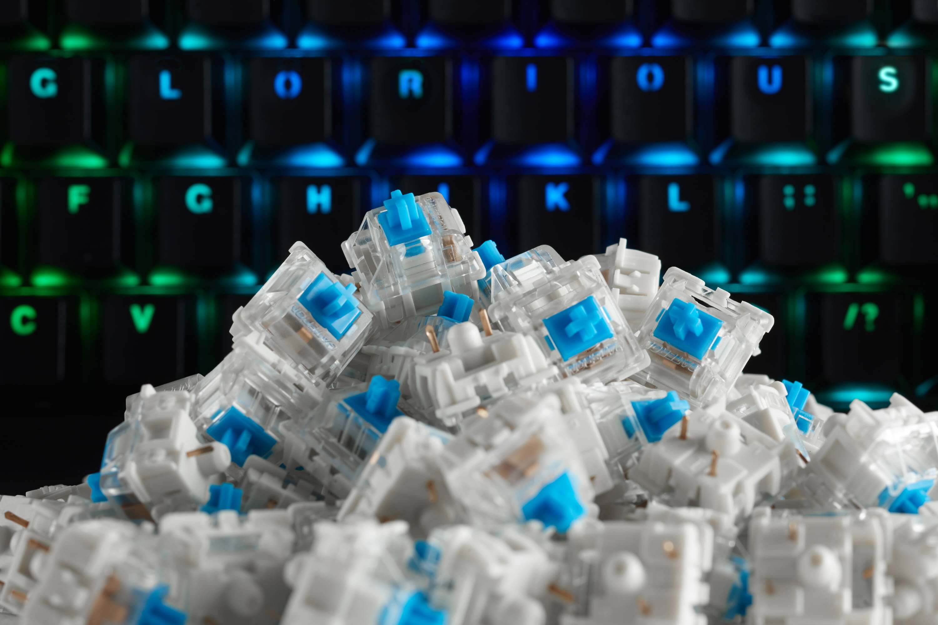 Gateron Blues: Blues are always a safe, middle-of-the-road choice. They are not too heavy or too light to press, and they produce a medium to high tone when used. Their tactile resistance is low, allowing you to get the feedback you desire without straining your fingers.