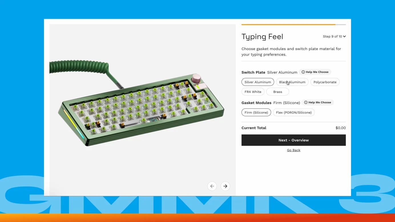 Though your switches of choice define the sound and tactility of your typing, you can also tailor other aspects: you can adjust the firmness or flexibility of your presses with modular gaskets, or refine the acoustics with a range of switch plate materials, like brass or polycarbonate.