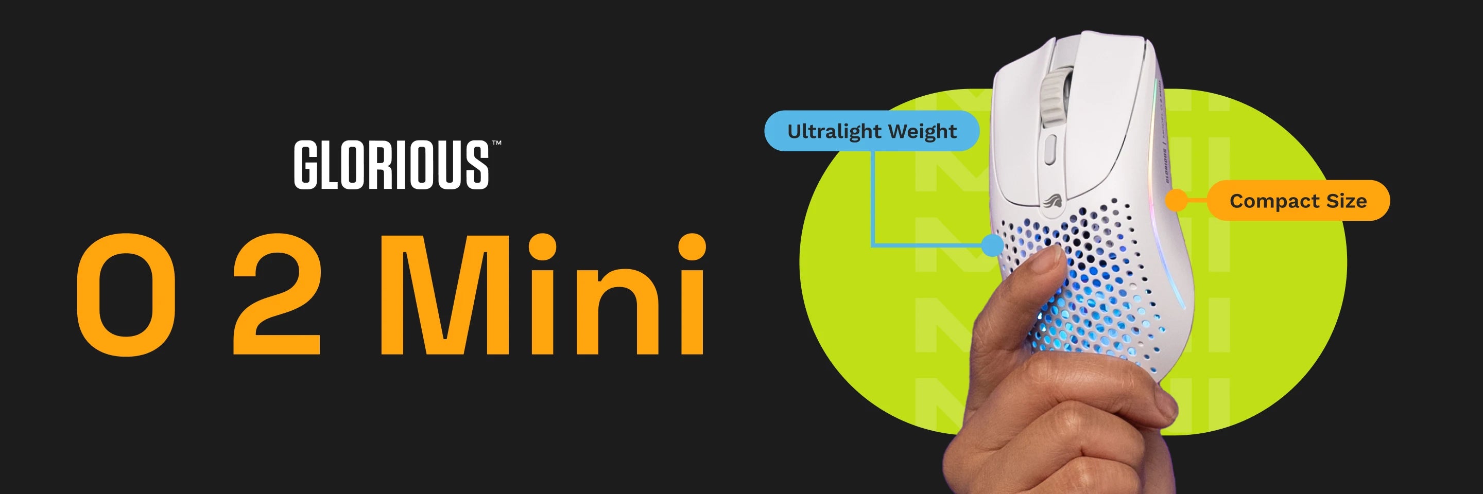 The lightest mouse that Glorious has ever released, the Model O 2 Mini, and the Model O 2 Mini Wireless - when milliseconds matter, weight really counts.