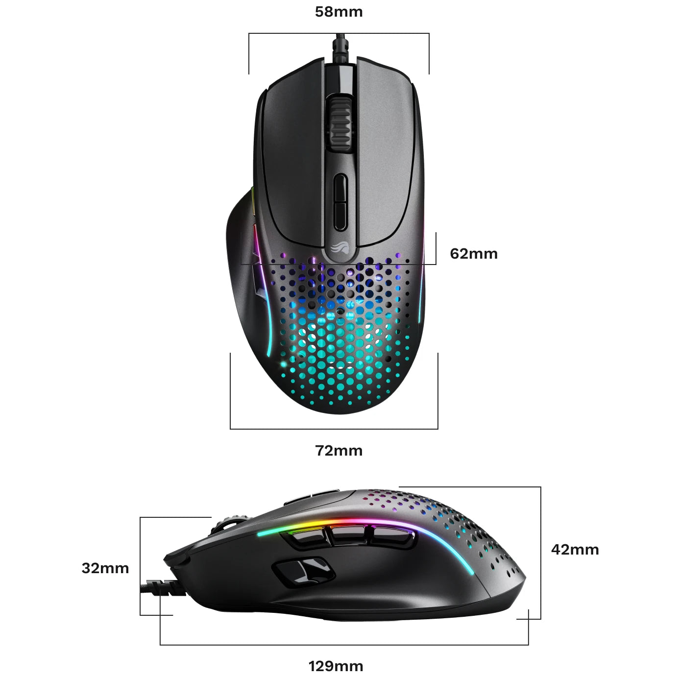 Model I 2 is game-ready right out of the box with button shortcuts for cycling DPI and RGB lighting.