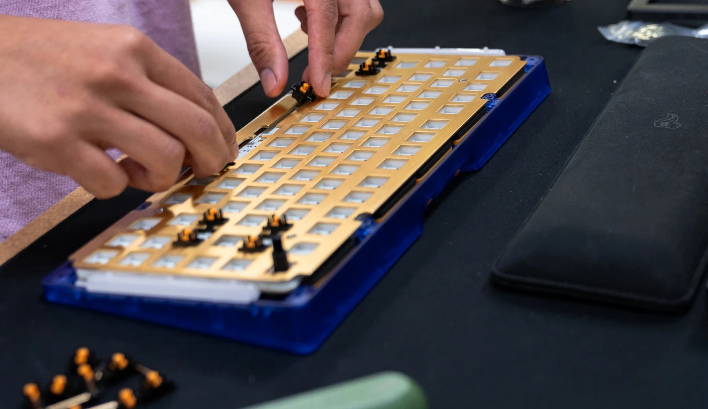 a. For MX Switches: Align the switch’s pins with the hotswap socket on the PCB before pressing straight down until it clicks into place.