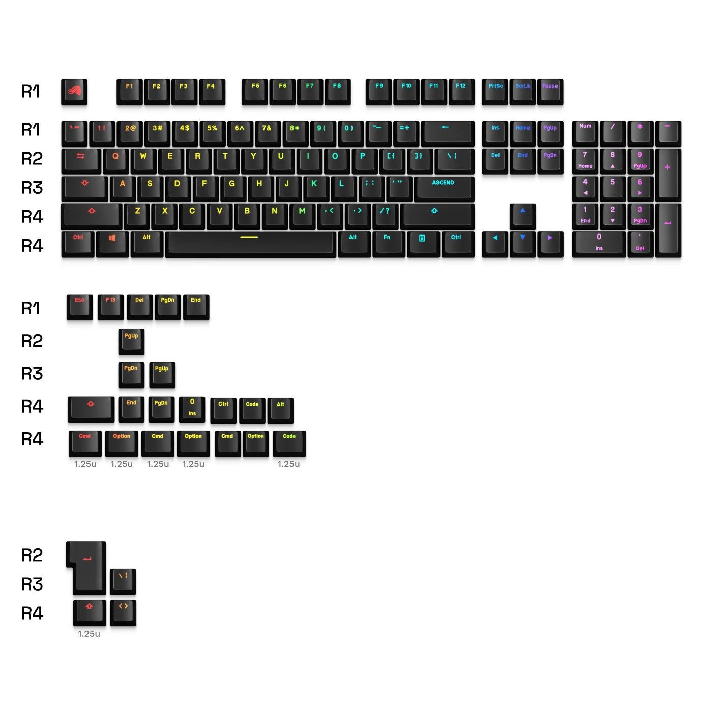 - Other Languages: 131 x GPBT Backlit RGB Keycaps