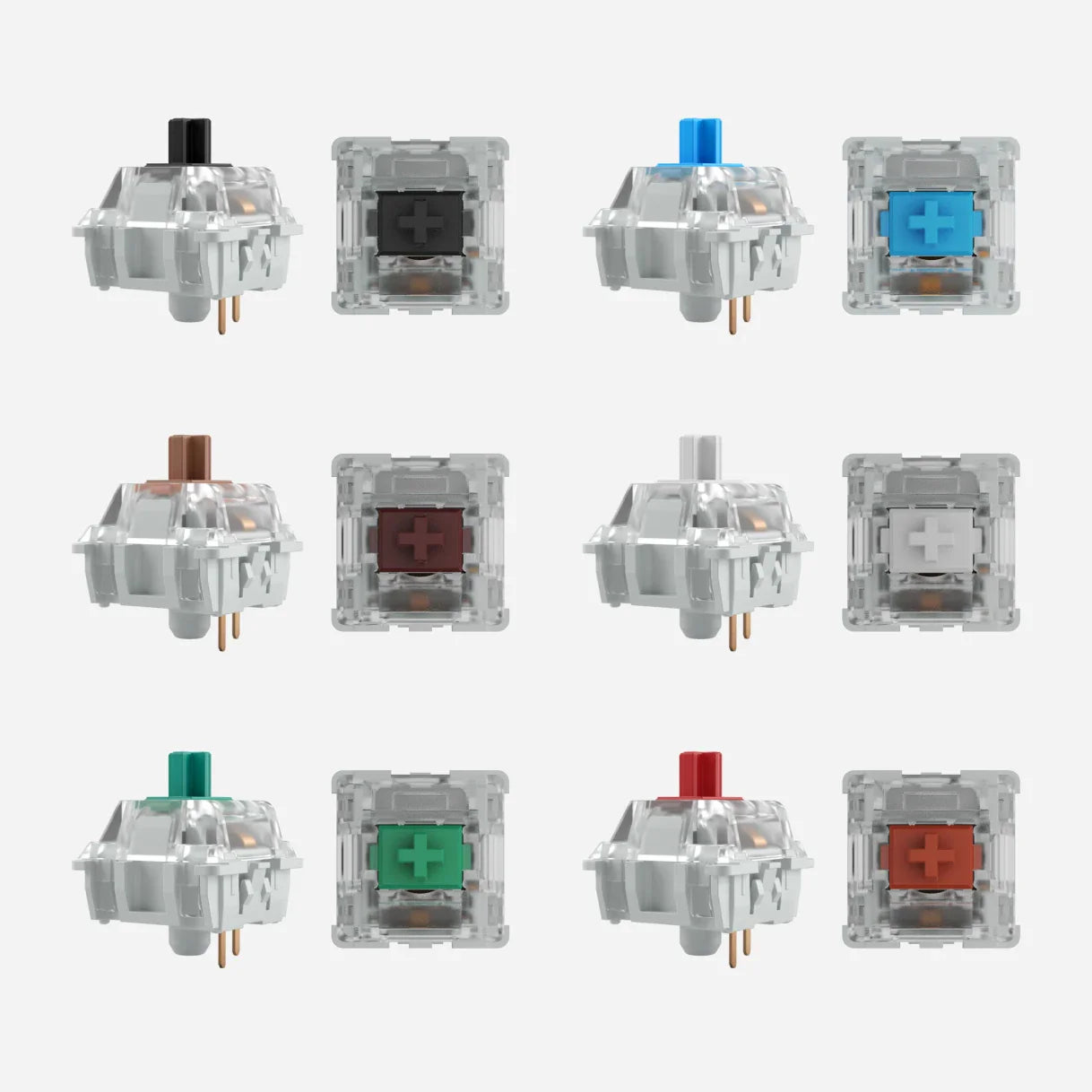 Black | Smooth linear switch with a heavier actuation force than Gateron Reds. |