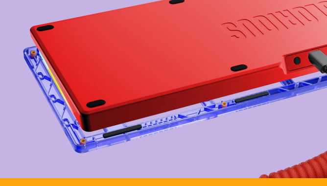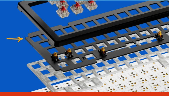 The included aluminum switch plate balances firm yet flexible typing with a neutral sound. Easily swap alternative material plates to customize keystroke acoustics and haptic feedback.