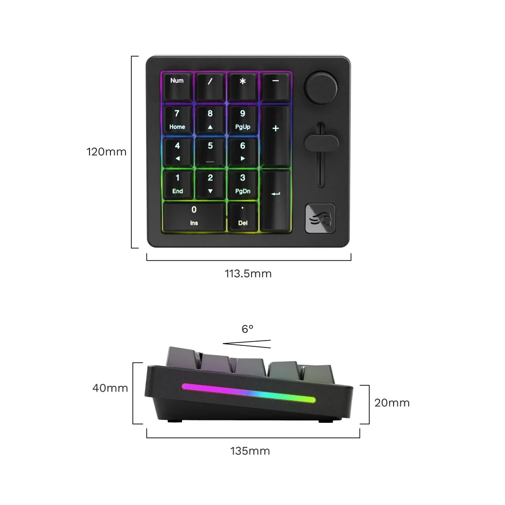 Size | 18 Key Numpad + Clickable Rotary Encoder |