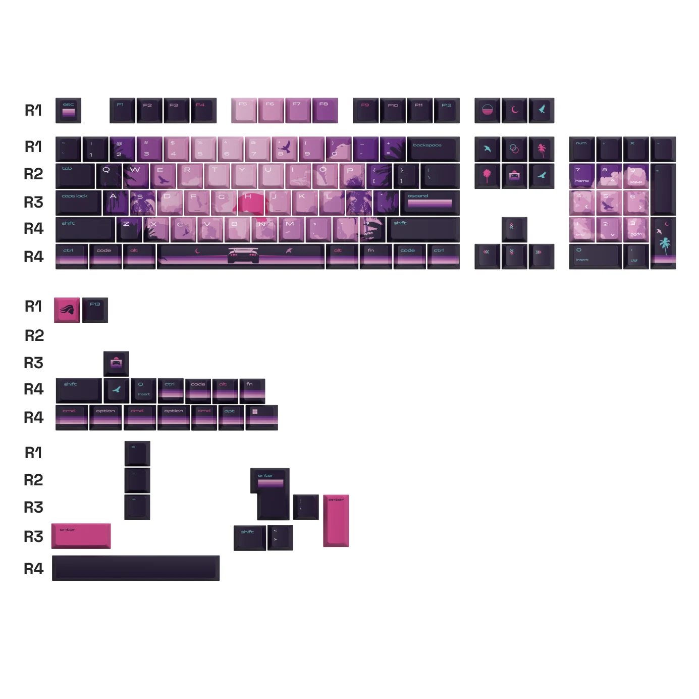 - 1 × Set of GBPT Synth Sunset Keycaps